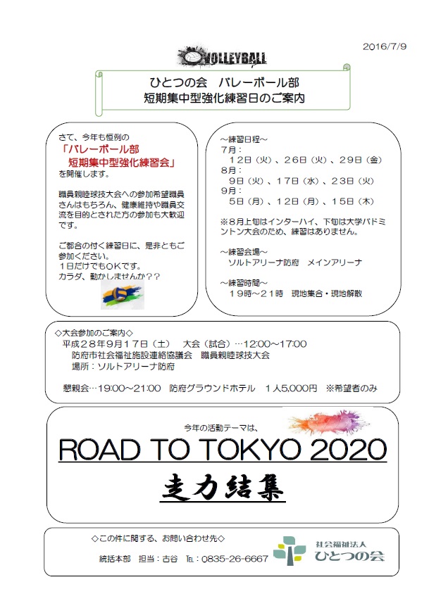 職員親睦バレーボール大会&練習会のご案内【統括本部】