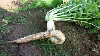 この写真はSさんのお宅で冬に出来た大根。何があっても人生を大切に生き抜こうとする。Sさんにそっくりな大根です。