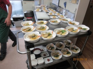第三部は、総料理長謹製「橘御膳」。早朝より仕込んだ甲斐あって、料亭の味にも劣らない絶品の数々に利用者様は舌鼓。