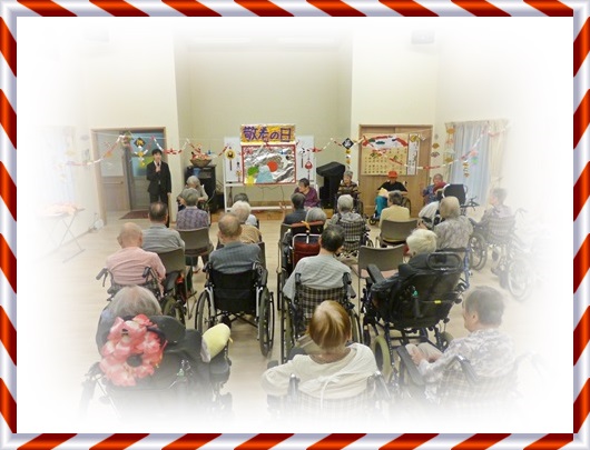 今日は敬老の日、地域交流ホールで敬老会を開催!