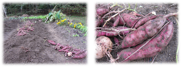 「写真を!」と思って畑に行くと…すでに芋は掘られていて、この状態になって