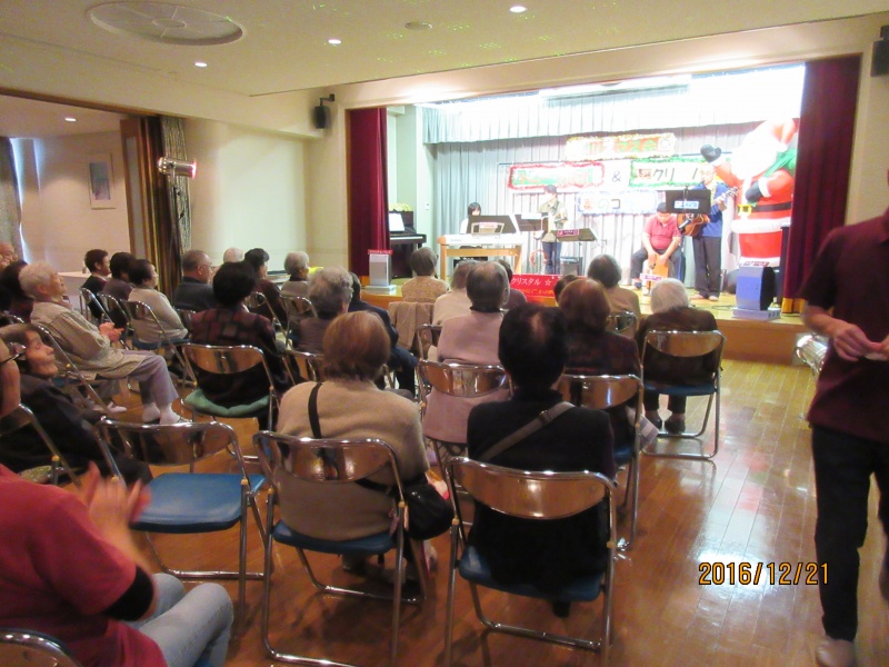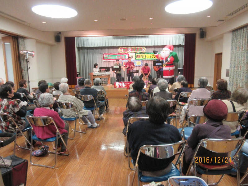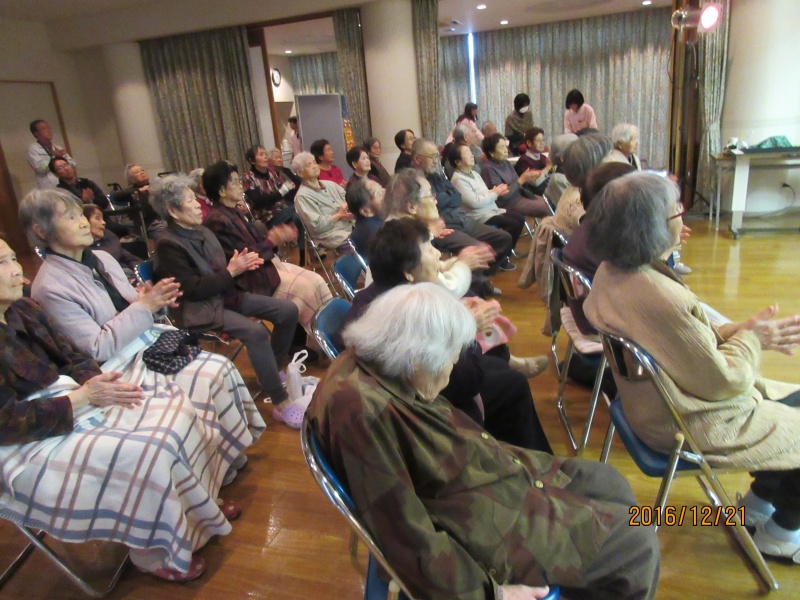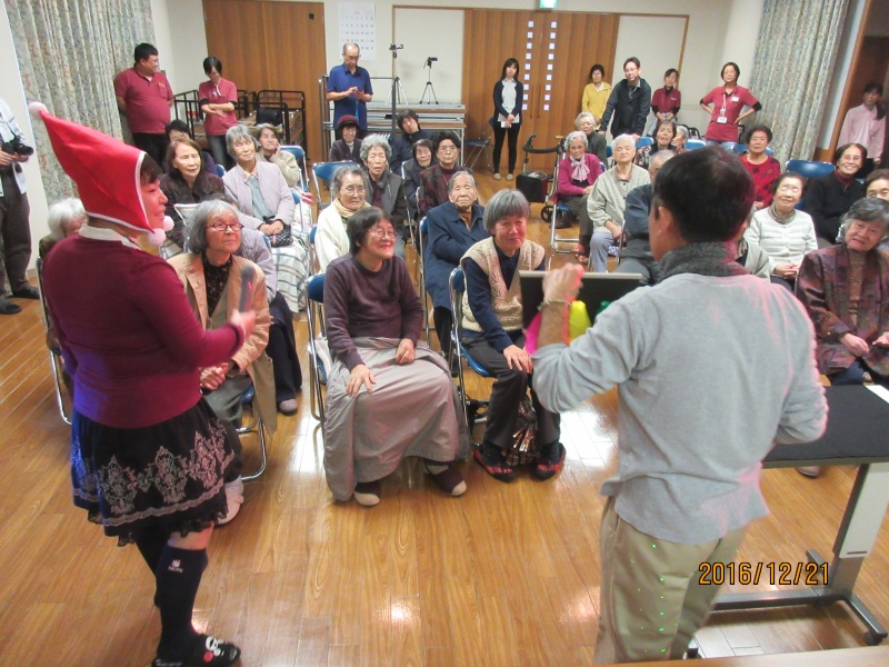 宇部市恩田地区で高齢者介護の一翼を担う好生園さんと宇部あいおい苑との合同クリスマス会を開催。ステージは、好生園さんの地域交流ホーム「にこにこ」。素晴らしい舞台で、お馴染みのクリスタル☆バンドもトニーカズオもいつもよりヒートアップ。特にトニーカズオも最近は引っ張りだこで、最近では女性アシスタントもしたがえ、奇想天外のマジックを披露されました。日頃とは一味違うクリスマスに利用者様は笑顔満天になっておられました。さすらいのマジシャン「トニー・カズオ」の正体は・・・・?