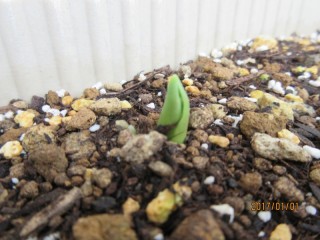 元旦の朝、新春の陽光を浴びて、新たな息吹が地面から顔を出していました。