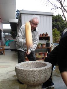 年末、たまのやでは「しめ縄作り・餅つき」など新たな年を