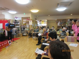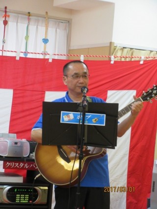 いよいよアニバーサリー・ウィークも三日目。3月1日の今日は、ちょうど宇部あいおい苑の10歳の誕生日。本日のイベントは、苑職員で結成された「クリスタル☆バンド」による生演奏。約6ヶ月という短期間の練習ではありましたが、利用者様に私どもの心から「ありがとう」がメロディーを通じて上手く伝わったでしょうか・・・。また、本日からユニホームをリニューアル。職員一同、次の新たな時代に向かって走り出しました。今後とも宇部あいおい苑を宜しくお願いいたします。10周年に当たり、豪華で綺麗な花束を頂戴いたしました。本当に有難うございました。(感謝)