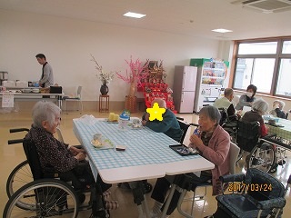 久々の喫茶開店![3月24日] 【フィラージュ開出】 2017.03.28 日誌 2月は防府でインフルエンザが流行していた為、感染予防の為喫茶OPENできませんでした… な・の・で!! 2か月ぶりの喫茶あおだもでした(^_-)-☆ せっかくなので、ひな人形も喫茶まで飾っていました!少し遅めのひな祭り気分♪♪ そして、介護職員の力作!手づくり桜の木と共に春らしさを演出(*^_^*) いつもと違った雰囲気の中、楽しく美味しくティータイムを過ごして頂きました! 前後の記事 最新記事へ 認知症普及啓発事業 ~サロン・デ・フィラージュ~[3月25日] 【フィラージュ開出】 古い記事へ 華麗な舞を堪能![3月21日] 【フィラージュ開出】