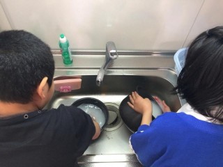 お兄ちゃん・お姉ちゃんは、昼食のご飯づくりを手伝ってくれたり。