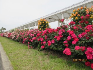 山口県の空の玄関口、山口宇部空港。昭和41年に開港し、今では年間90万人を超える利用者を数えるようになりました。毎年この時期に空港の周りを楽しませてくれるのが薔薇園。今年も160種、約1,000本のバラが色鮮やかに咲き乱れていました。薔薇と利用者様の笑顔の競演、実に見事でした。
