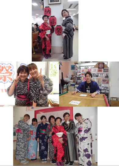 いつもは、制服姿の職員も、着付けのできる職員が、女性職員に浴衣を着付け、