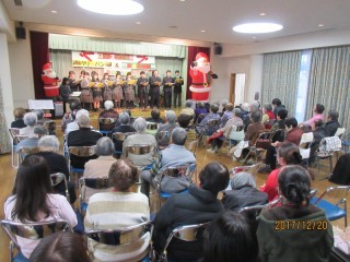 街角ではXmasキャロルが響く12月20日、宇部市内で高齢者介護の一翼を担う好生園さんと当苑との合同クリスマス会を開催。昨年に引き続き、今年で2回目。もちろん、今年も慶進中・高校合唱部の皆さんが合唱を披露していただきました。