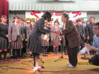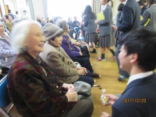 最後に、利用者様からは合唱部の皆さんに感謝状の贈呈、そして生徒さんから利用者様にクリスマスプレゼント。