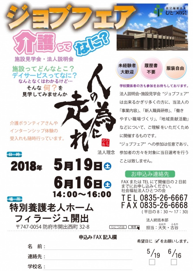 特別養護老人ホーム フィラージュ開出(防府市開出西町32-8)にて開催します。