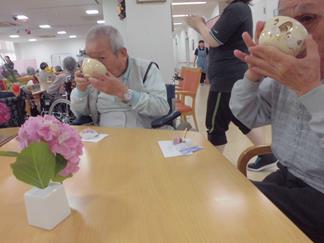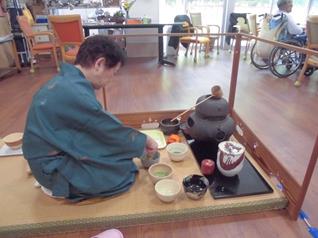 茶道の心得のある職員が、お抹茶をたて、和菓子と一緒にいただきました。