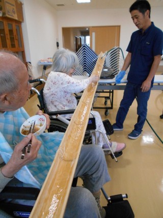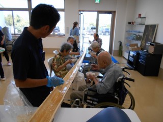 去る8月8日、特養・ショートステイ合同で『流しそうめん』を行いました。