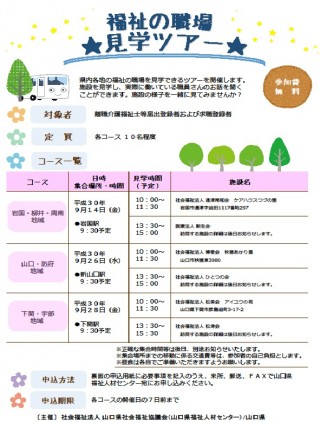 9/26(水)”福祉の職場見学ツアー”開催 【山口県福祉人材センター・統括本部】