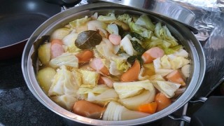 「今夜は寒くなっていたので、身体が温まるポトフです」 世話人Oさん談