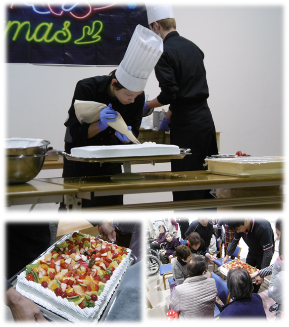今回は”パティシエ”さんに来ていただき、ご利用者の皆さんのまえで、ケーキを