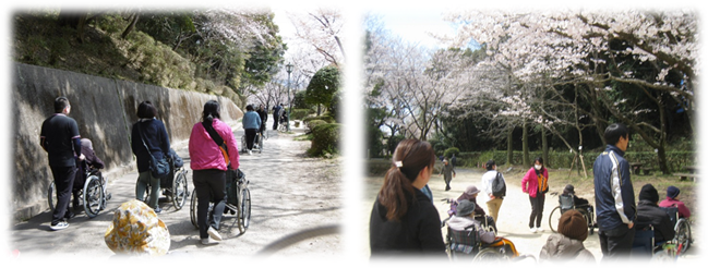 ご利用者の皆さんと、満開の桜を見に行ってきました。