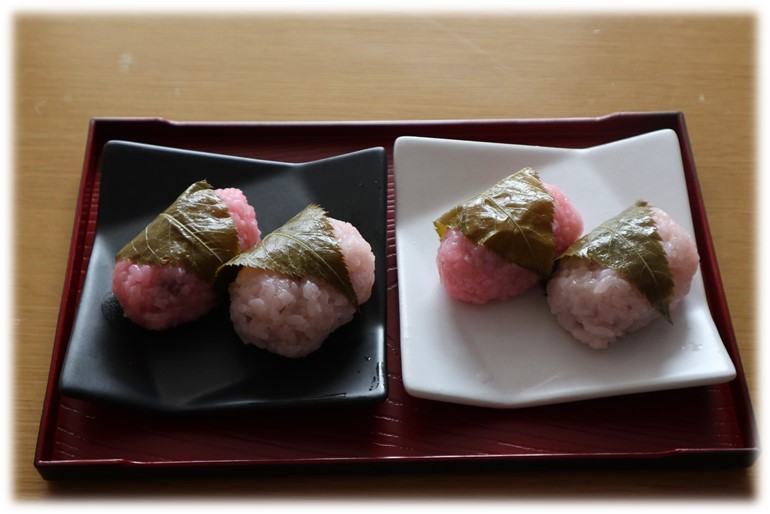 ひな人形を見ていただきながら、桜餅を食べていただきました(^^)v