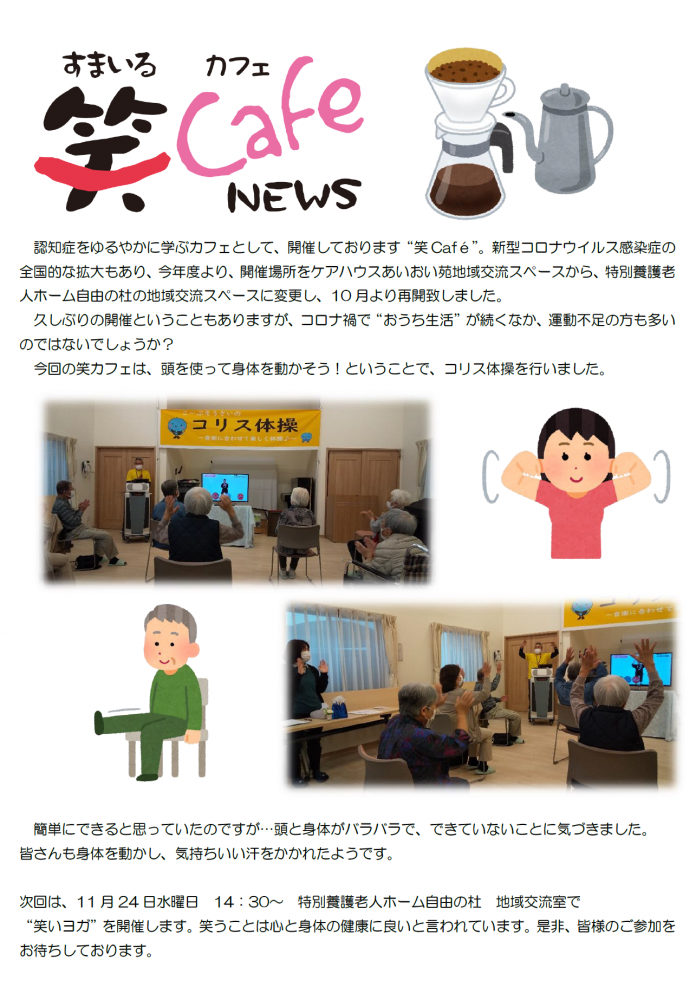 笑(すまいる)カフェNEWS ☆10月は”コリス体操”を開催!!