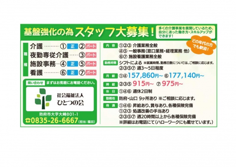 ㈱地域情報新聞さんが発行する「ほっぷ」第953号にひとつの会の求人広告を出させていただきました。