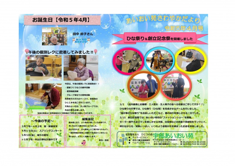 さわやかだより 令和5年4月号【宇部あいおい苑】