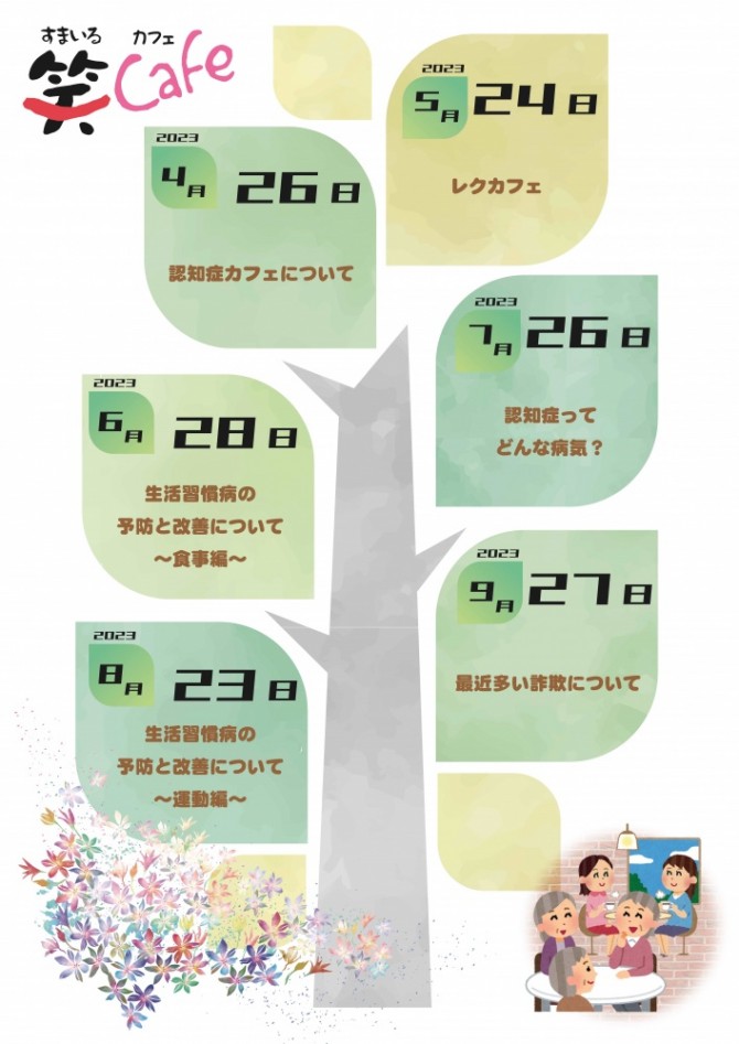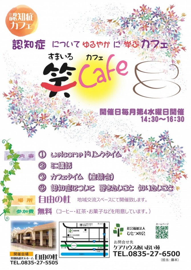 毎月第4水曜日の14:30~ 自由の杜 地域交流室で笑(すまいる)カフェを開催しております。