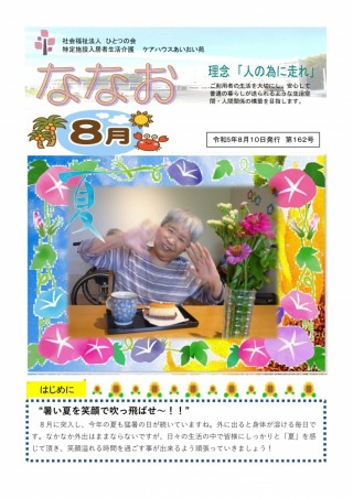 猛暑のなか、あいおい苑の中で素敵な笑顔を沢山みつけました。「ななお」を通して皆さんにお届けしたいと思います。