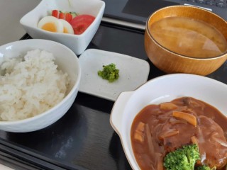 今日の昼食メインは「ハンバーグ・デミソース」