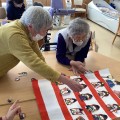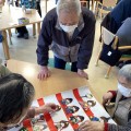 デイサービスでは、ひな壇の正しい並びを思い出しながら並べる雛祭りのレクリエーションを開催しました。