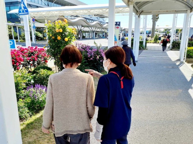 デイサービスセンターの外出レクリエーション活動は歩行訓練目的にて、