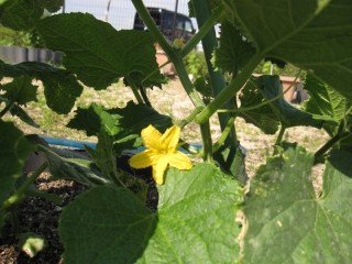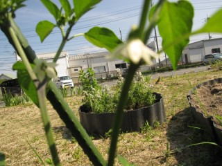 フィーラージュの畑に植えた野菜の苗に花が咲きました
