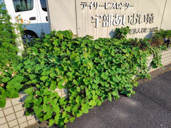 苑の前庭に、今年5月に植えた「さつまいも」が順調に育っています。