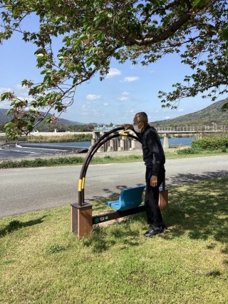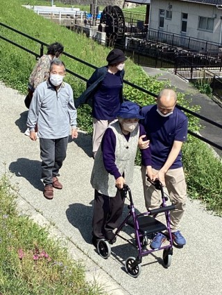 天気の良い月曜日は屋外にて歩行訓練に行きました