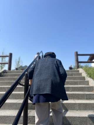 坂あり階段ありのコースで見晴らしの良い佐波川の土手を歩きます。