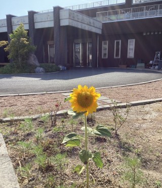 梅雨を迎える前にフィラージュの園庭にひまわりが咲きました