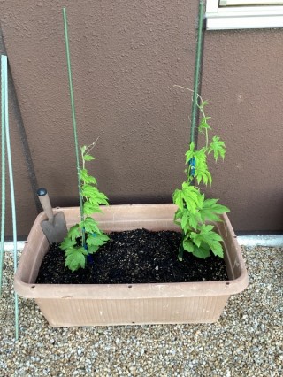 緑のカーテンには、まだ時間が掛かりそうですね。