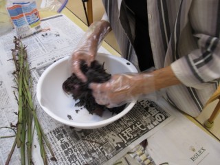 今回は赤紫蘇の葉を塩もみして漬け込みました