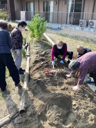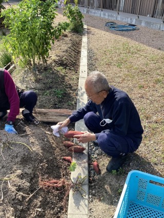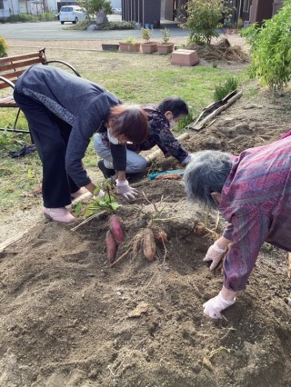 デイサービス園芸部では春に植えたさつま芋を収穫しました
