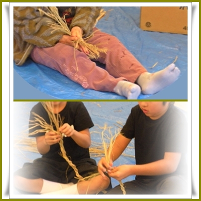 急きょ参加の子供たちも見よう見まねで編んでいました(^_-)-☆