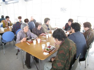 お花見にお弁当!「お酒を買って持っていこうか?」と言われる利用者様もおられましたが、今日は我慢我慢…。コップの中には松茸スープも入っていますから!!!