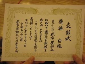 皆様には、職員から賞状と金銀メダルを授与し、今年も運動会は大成功で閉会となりました。