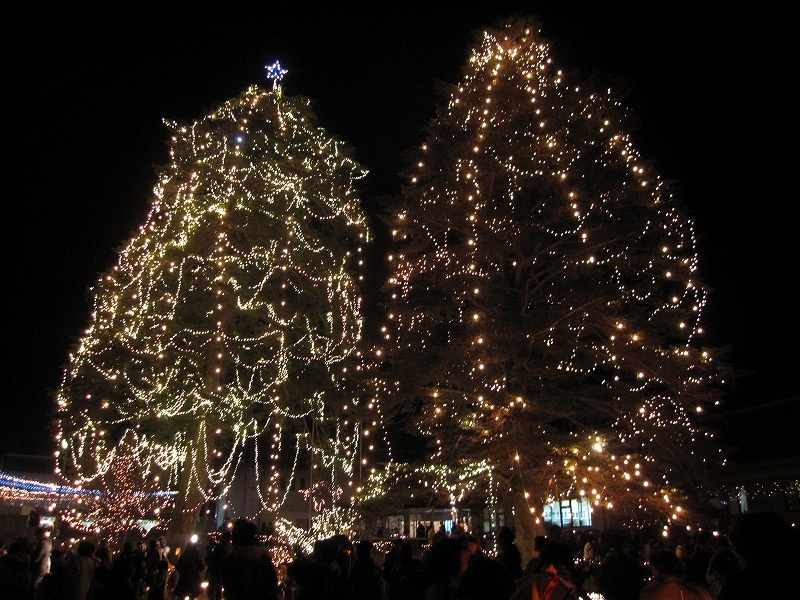 点灯式で灯された 2本の巨大もみの木のイルミネーションはまさに圧巻でした!