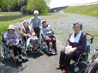 風が強いやら出ないと愚図る入居者はおられるわで大変でしたが・・・。皆さん楽しんでくださったようです。