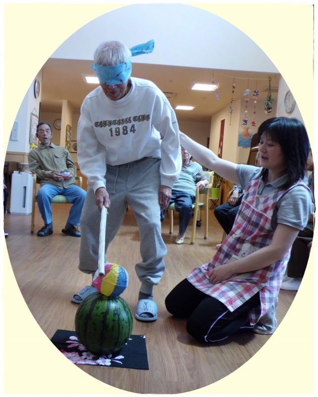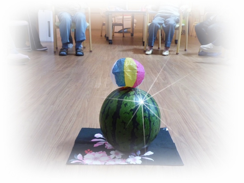 さて、焼きあがるまでの間、ホーム内ではみなさんですいか割り大会をして盛り上がりました