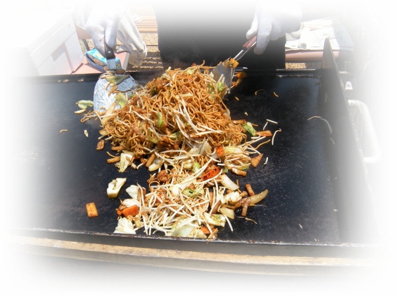 中でも5月18日(水)の昼食は ホームの外で ちまたで(内輪)で有名な焼きそば職人を