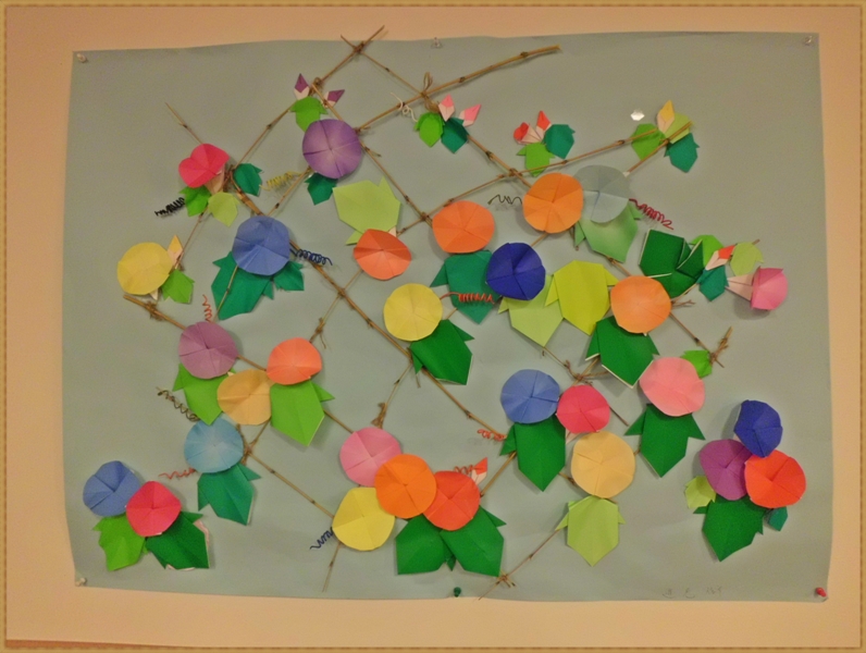 折り紙の朝顔も完成しホーム内は花満開です