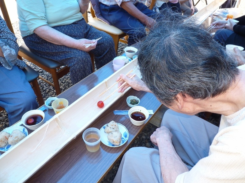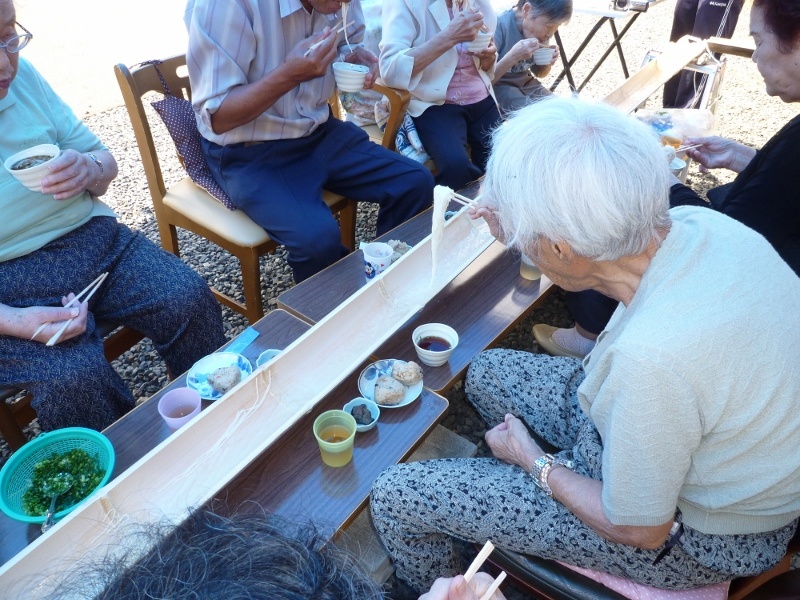 徳佐でも遅ればせながら、8月の締めにそうめん流しをしました。!(^^)!