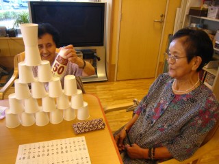 世の中には器用な人がいるものです。機能訓練のつもりが、いつの間にか記録に挑戦!!!
