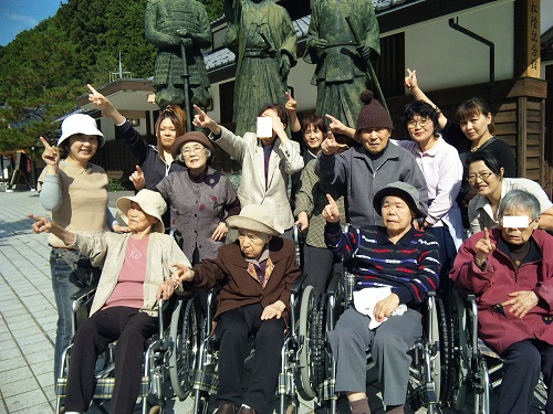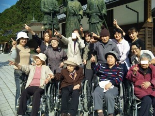 10月31日(月)、維新発祥の町萩に行ってきました。写真は道の駅・萩往還での1シーン。維新の志士達と同じく空を指さしてみました。全員で同じ行動がとれたのは、当苑開設以来初めてかも・・・。景色も食事も満喫した一日でした。